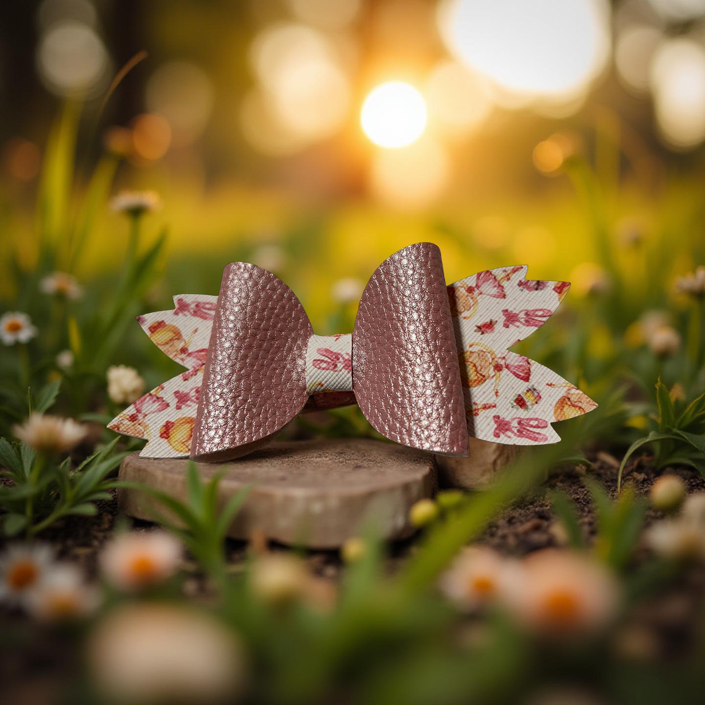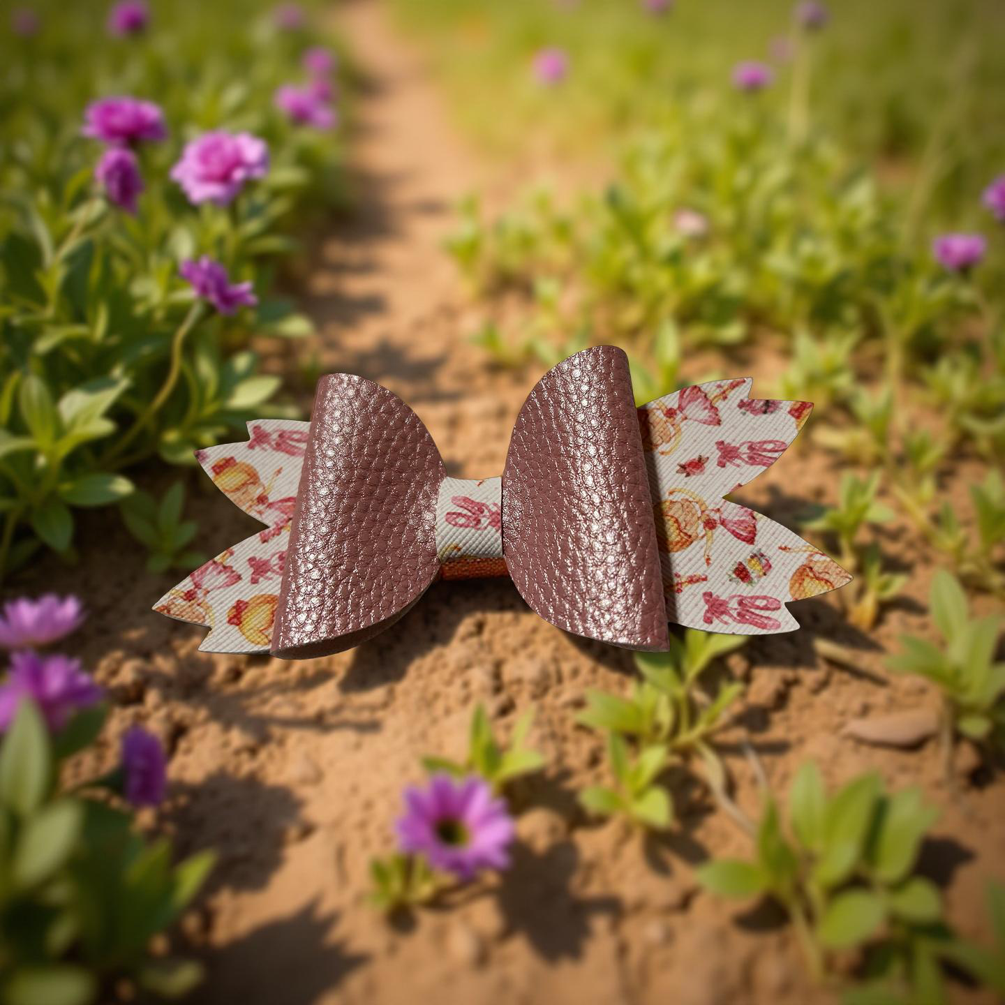 A bow that’s as sweet as it looks! With metallic pink loops and a candy-printed base, this layered beauty is perfect for birthdays, treat days, or just because. It’s a sugar rush in accessory form fun, festive, and totally irresistible.