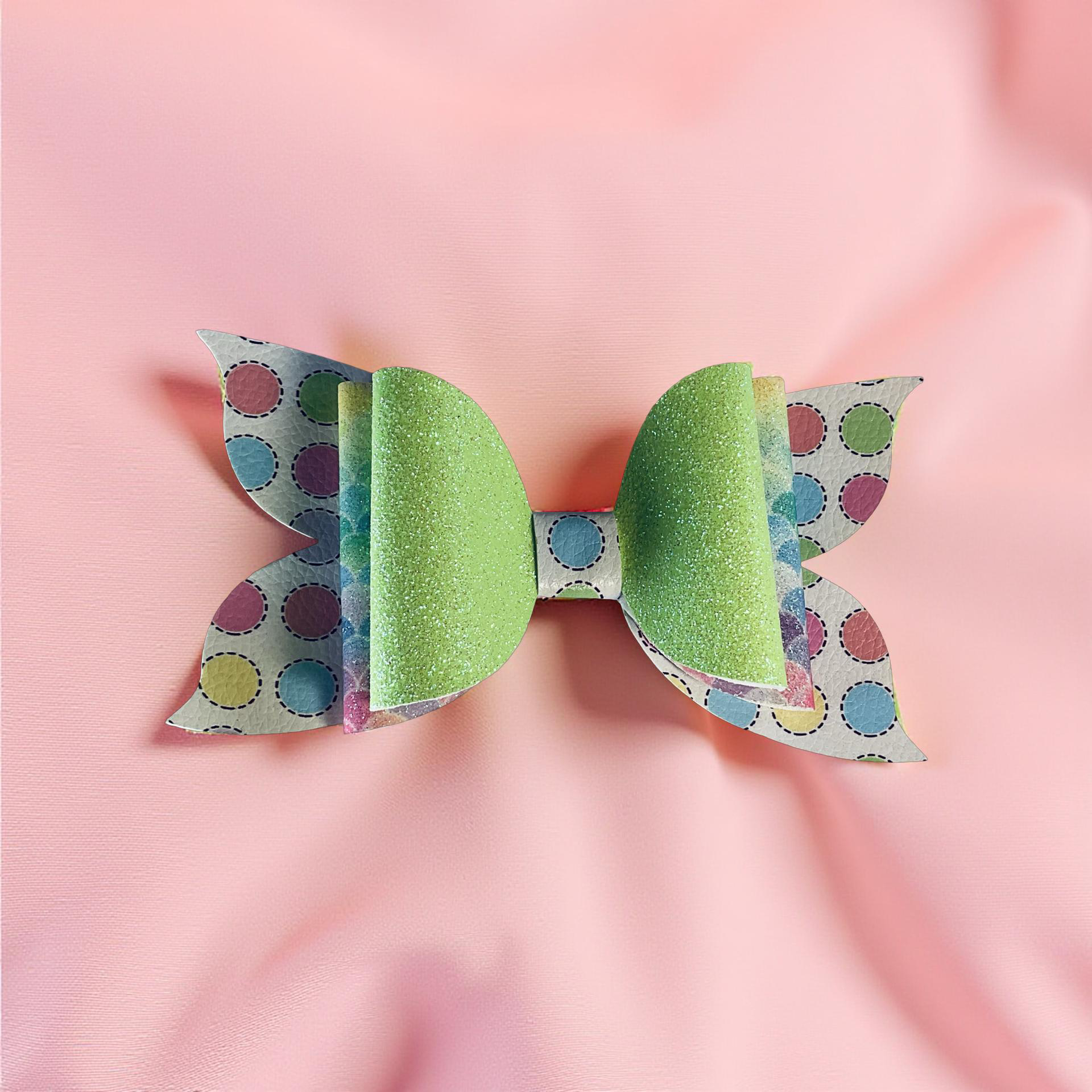 Green glitter and polka dot tails make this bow a celebration in every strand. It’s like a candy shop exploded—in the best way possible. Wear it when you want to turn heads and spread joy.