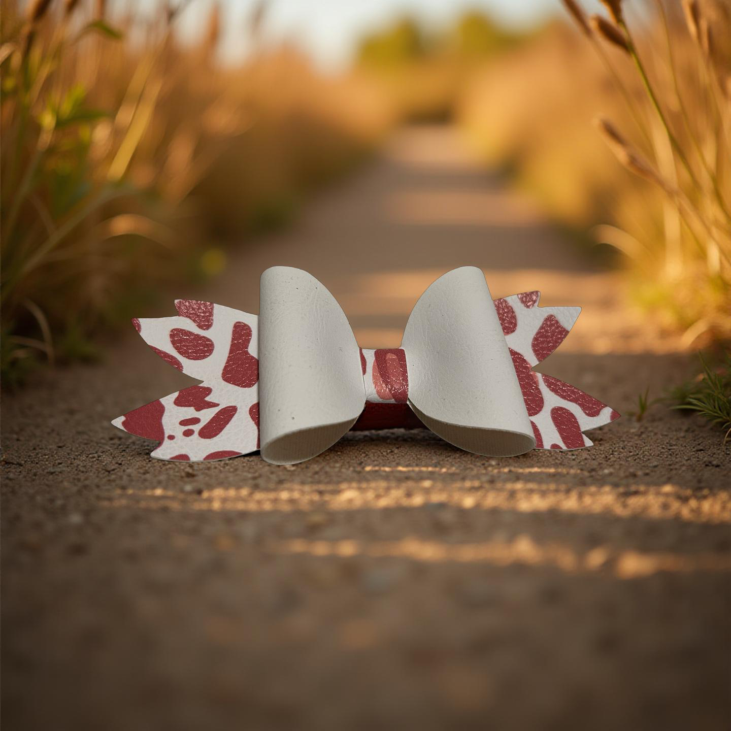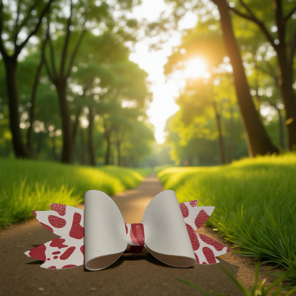 A winter-ready wild thing! This bow blends crisp white loops with bold red animal print for a look that’s equal parts cozy and fierce. Perfect for holiday glam, winter walks, or just adding a pop of wild charm.