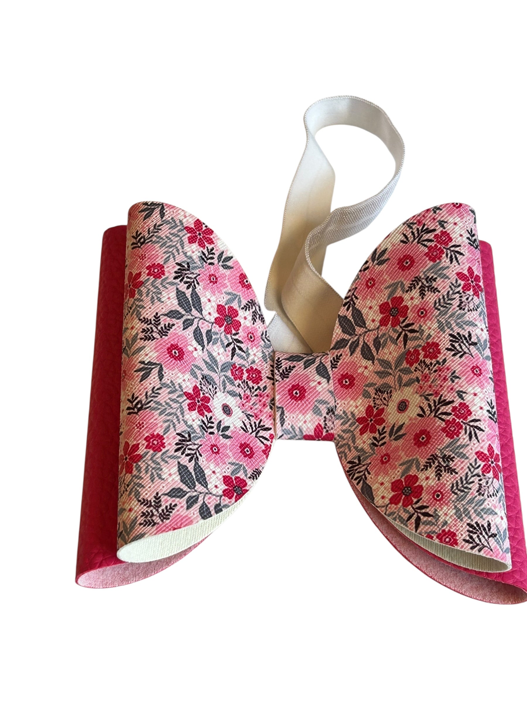 A garden of charm in every detail! This headband features a floral bow bursting with pink, red, and black blooms, backed by a bold red layer for extra volume. The white ribbon band adds a soft, classic touch—perfect for spring days, tea parties, or just blooming with style.