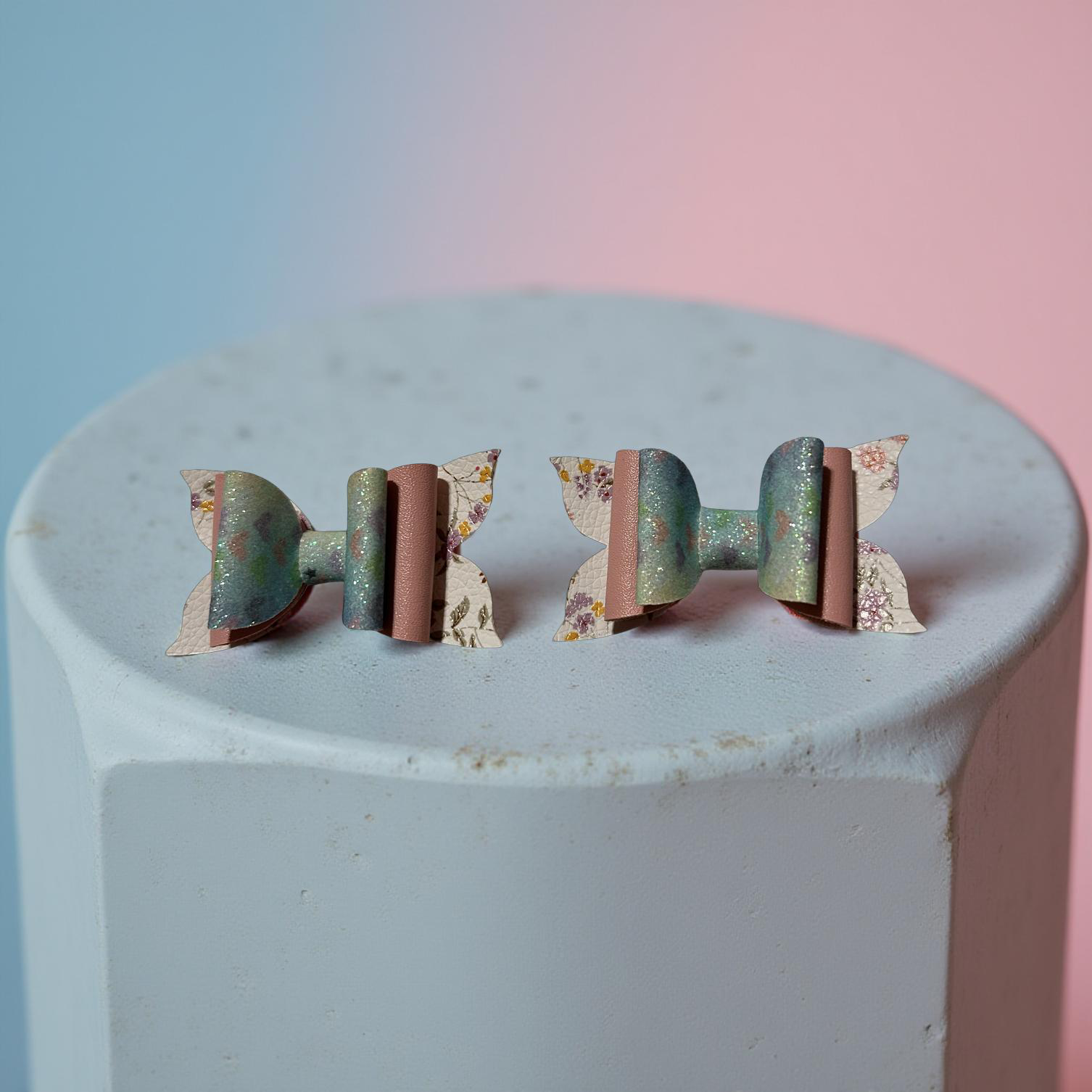 A rainbow of shimmer meets blooming charm! These handcrafted paper bows feature ombré glitter loops, floral wings, and a rolled pink center—each one a tiny celebration of color and texture. Perfect for spring drops, dreamy DIYs, or any moment that calls for sparkle and bloom.