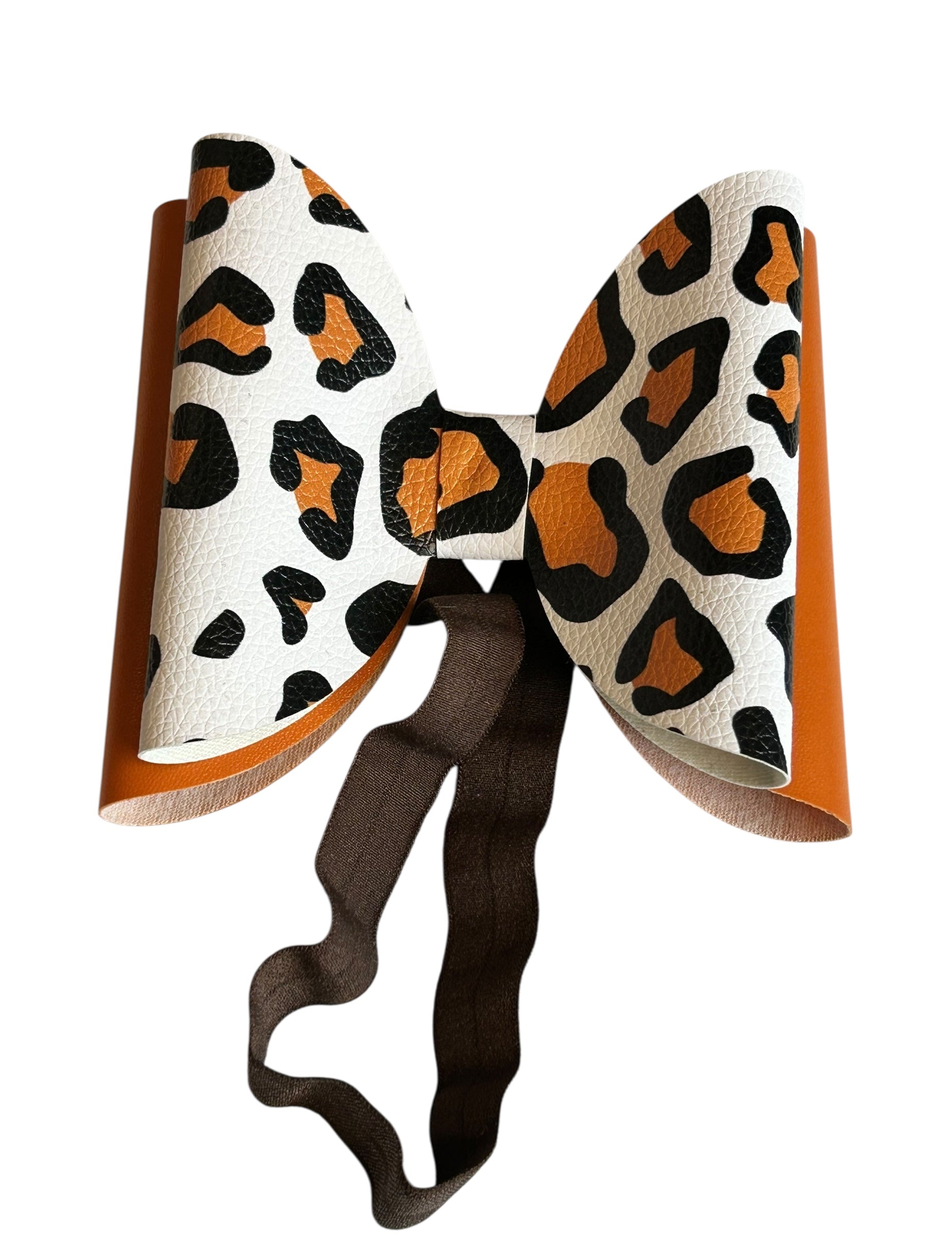 Wild meets chic in this head-turning headband! The bow features bold leopard spots framed by vibrant orange edges, while the wavy dark brown elastic band adds a touch of earthy elegance and all-day comfort. It’s a must-have for fashionistas who love a little jungle glam.