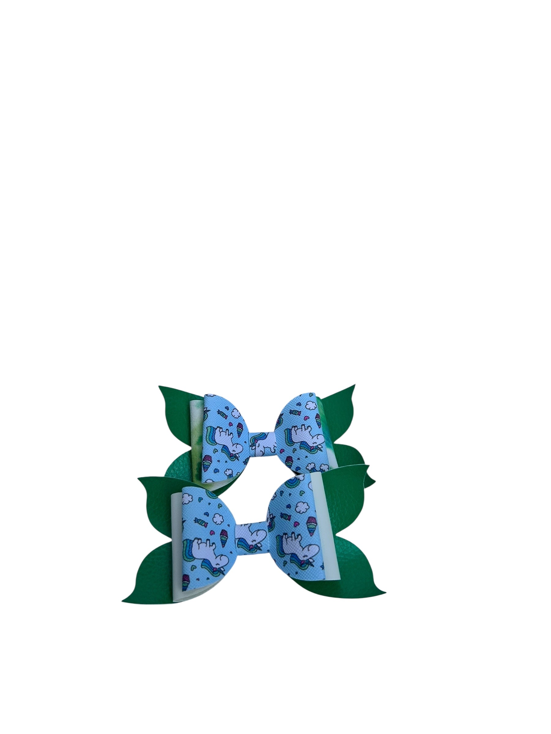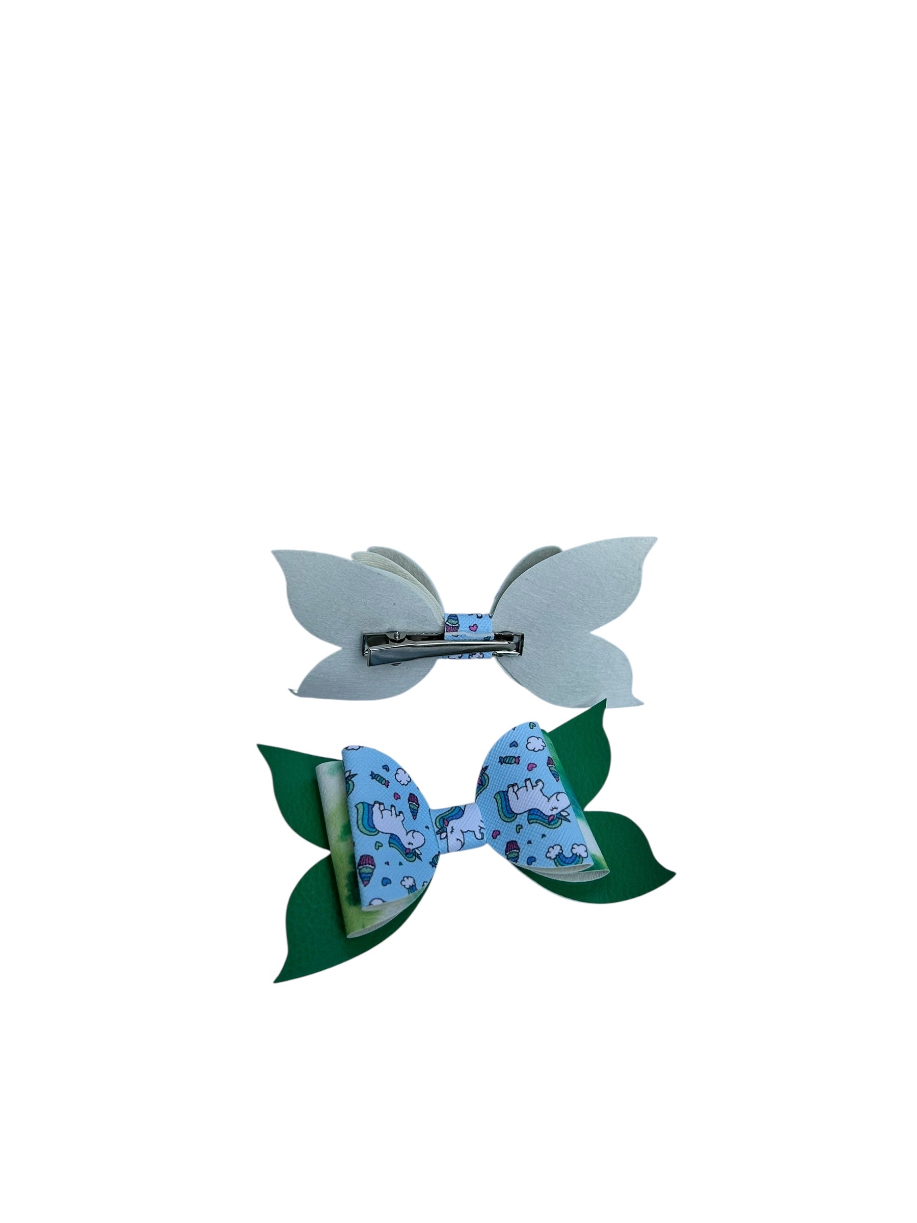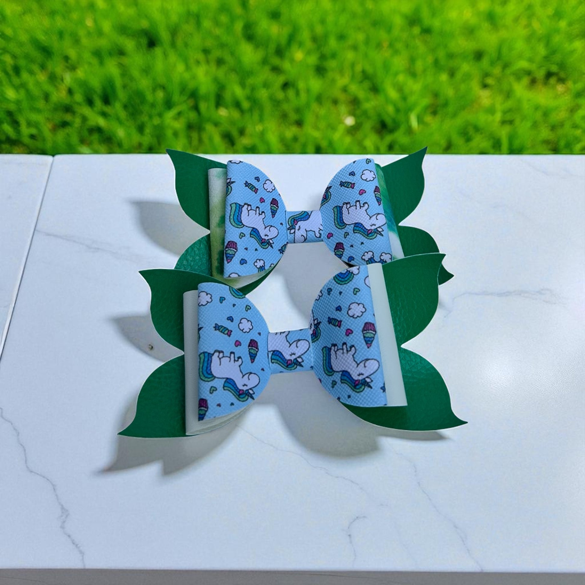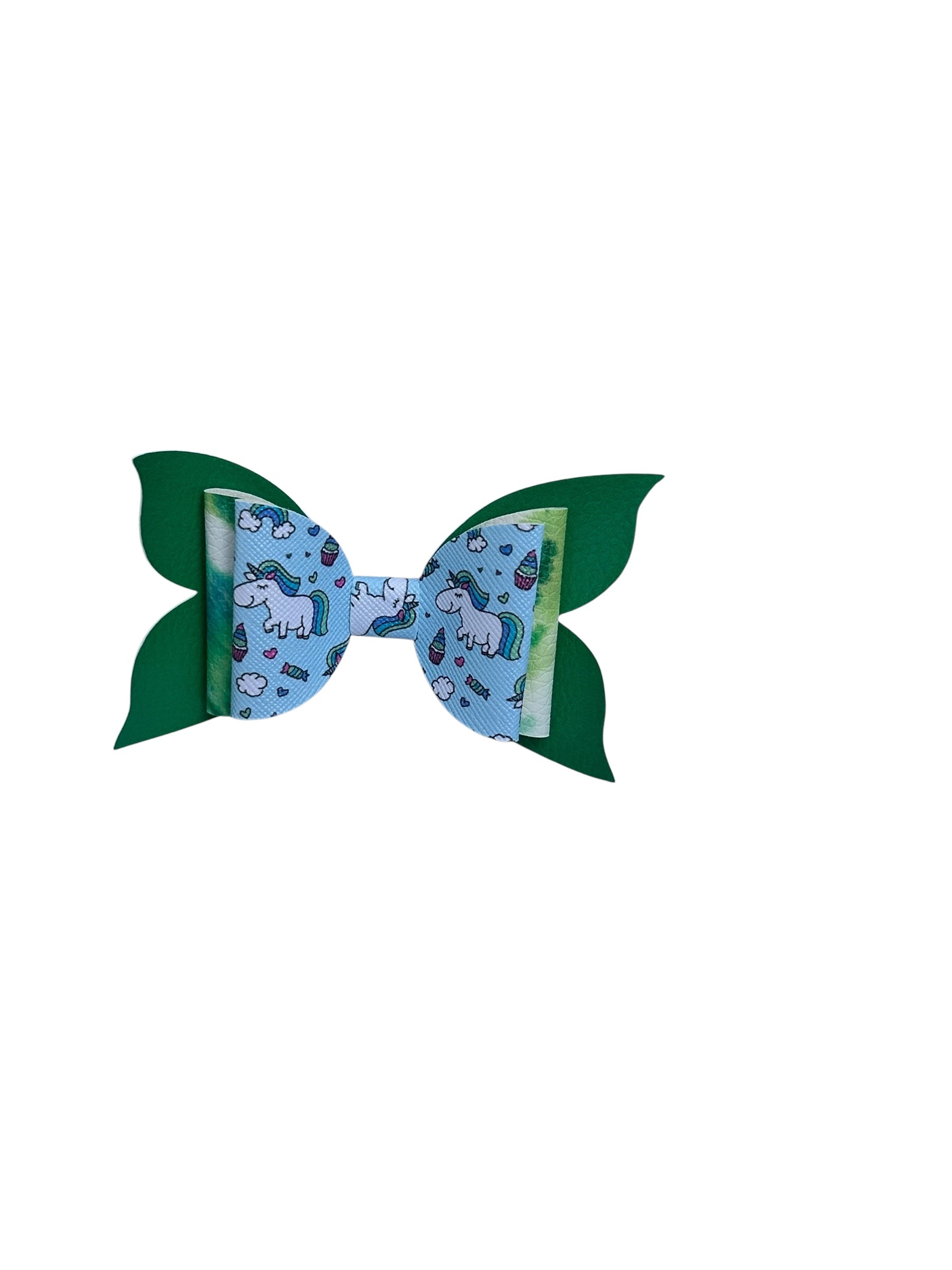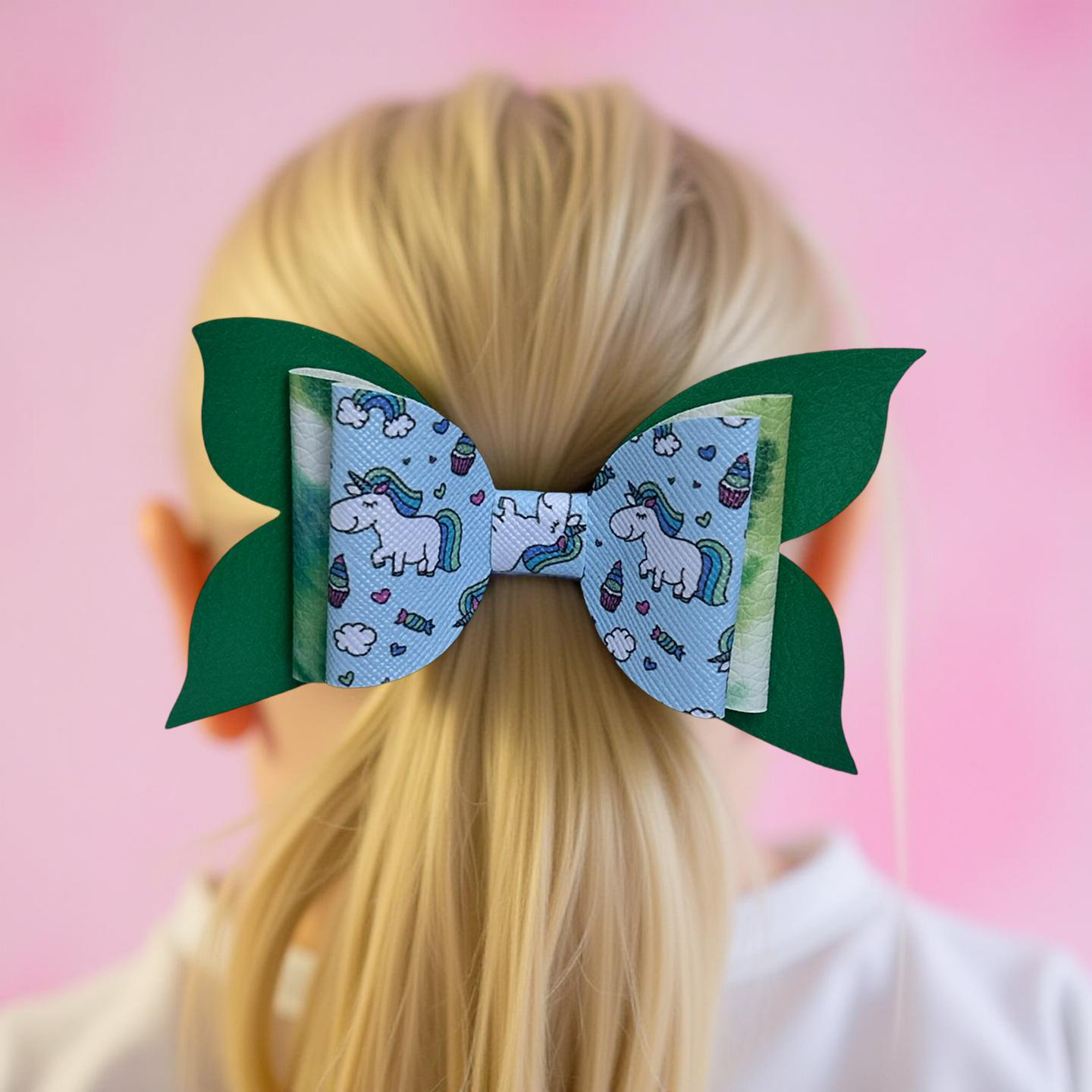 “Bring a sprinkle of unicorn magic to every day with this enchanting green hair bow! Featuring a whimsical unicorn design and a sparkling finish, this bow is perfect for adding a pop of color and fantasy to any outfit. Lightweight, comfy, and secured with a silver alligator clip, it’s a must-have accessory for every unicorn lover!” 🦄✨💚