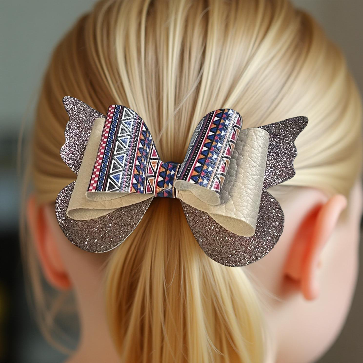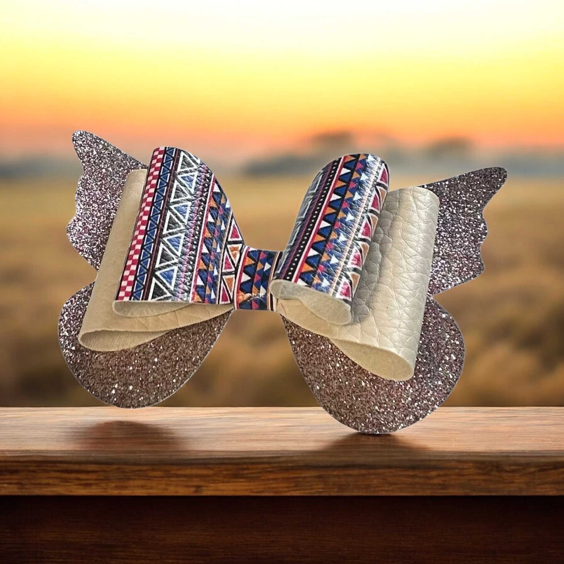 Get the party started with our Party Spark Bow! Bursting with glittery wings and bold tribal patterns, this bow brings sparkle, color, and fun to any outfit. Whether it’s for school, playdates, or just because it’s the ultimate accessory for little trendsetters who love to shine bright!