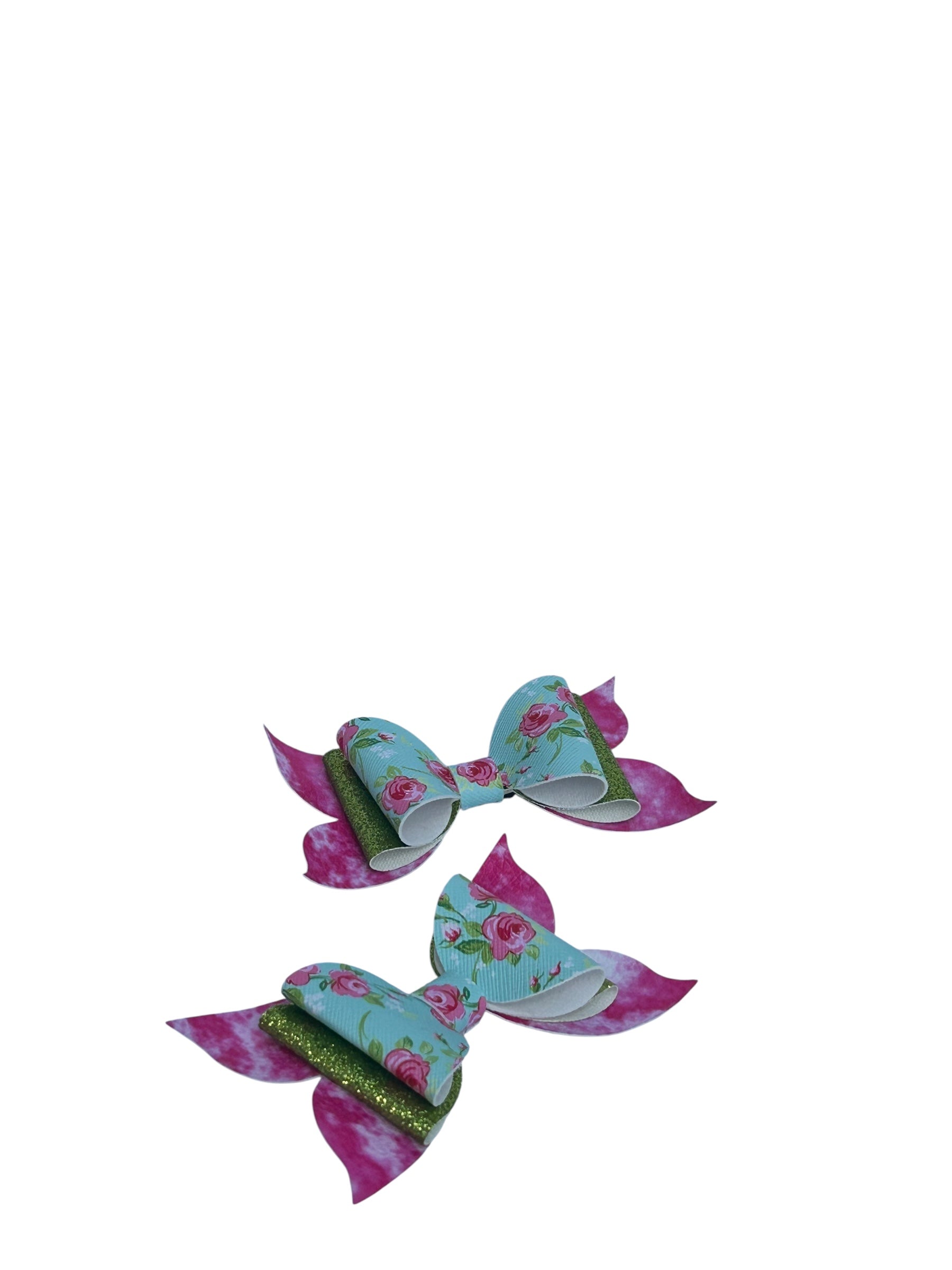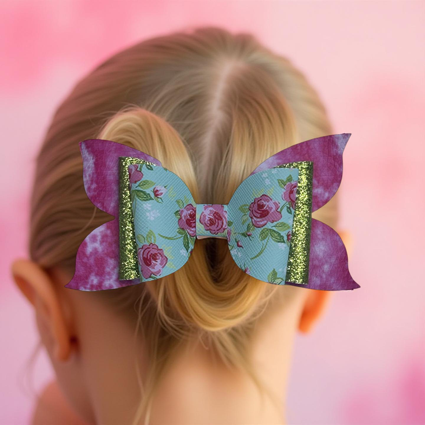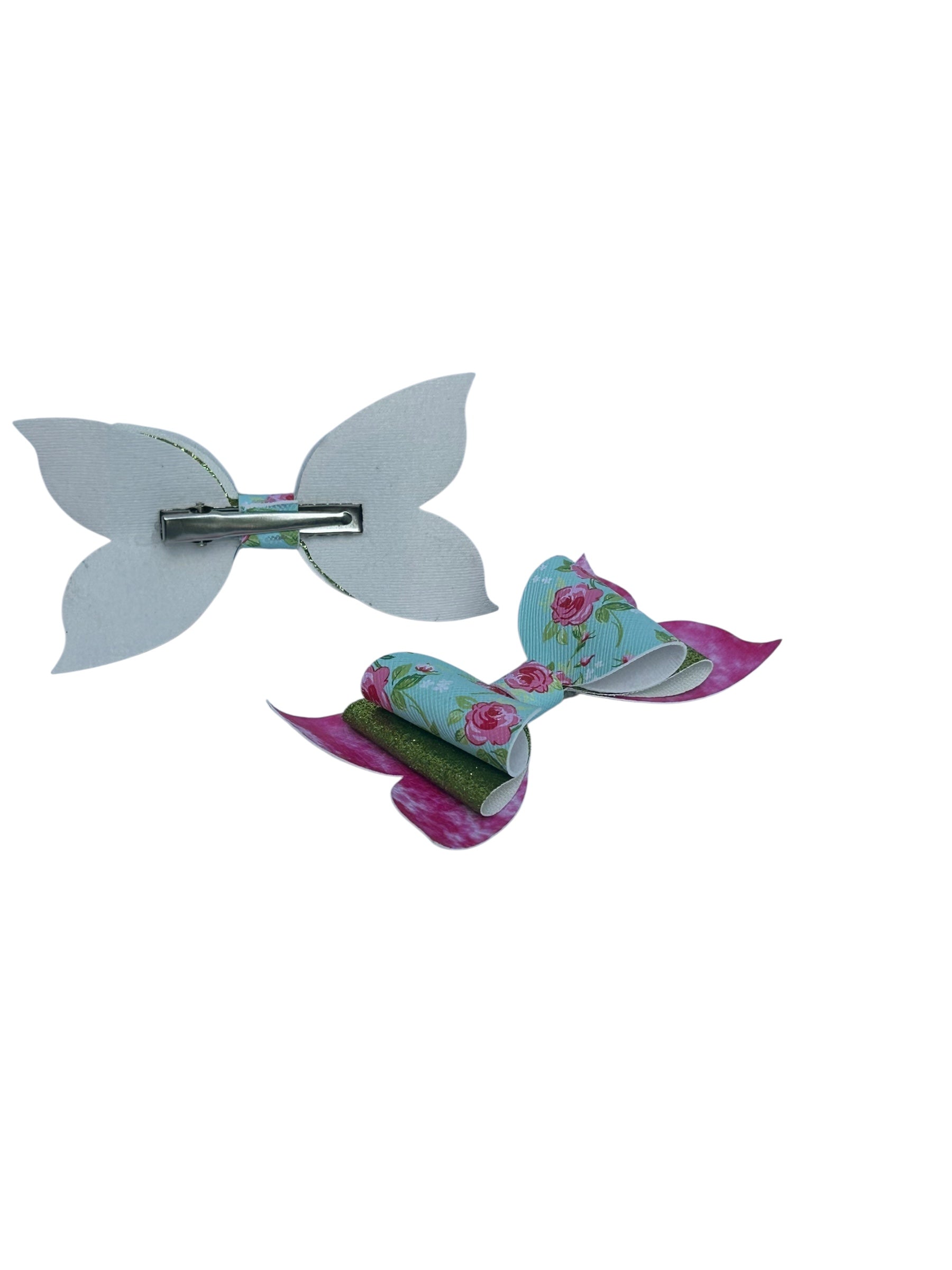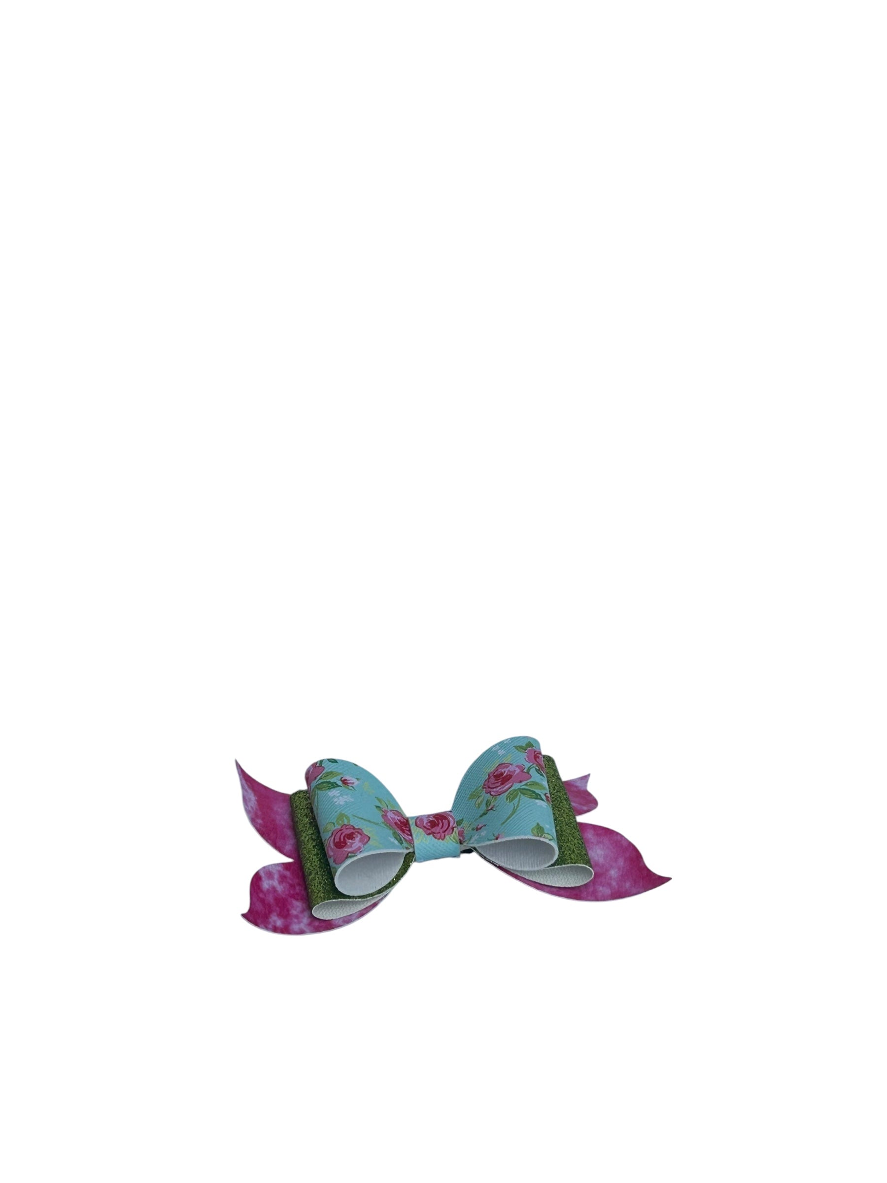 “Shine bright with a touch of floral charm! This dazzling bow features a sparkling blend of pink, white, and green topped with delicate pink roses, making it the perfect accessory for adding a pop of elegance and fun to any outfit. Lightweight, comfy, and secured with a silver alligator clip, it’s a must-have for little fashionistas who love a mix of sparkle and sweetness!” 🌸💖💚