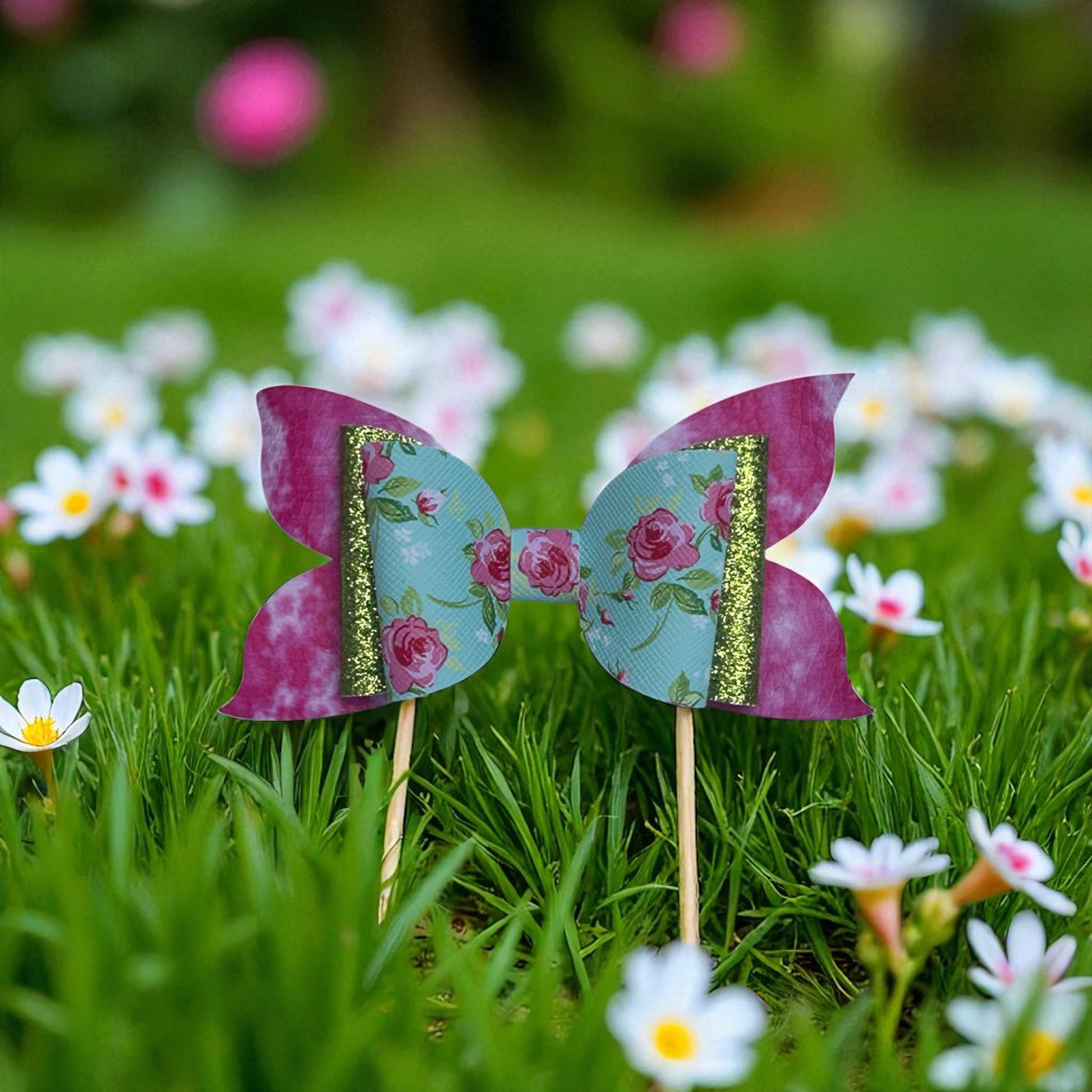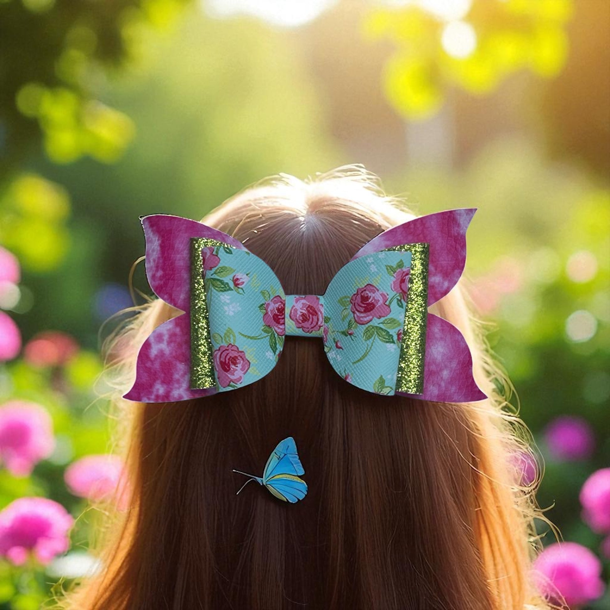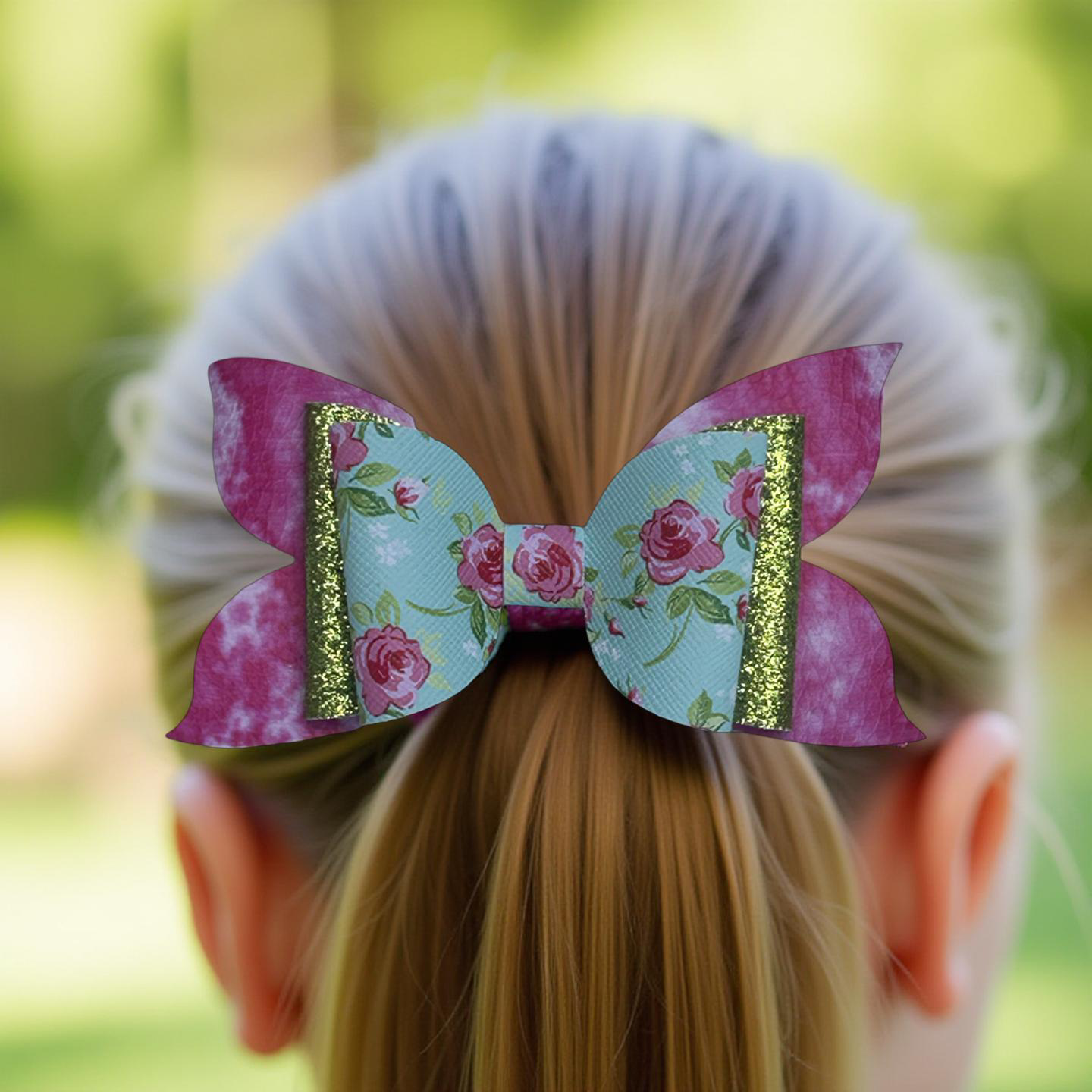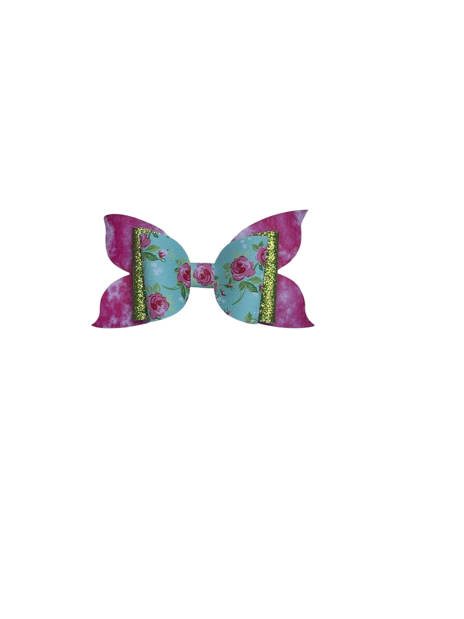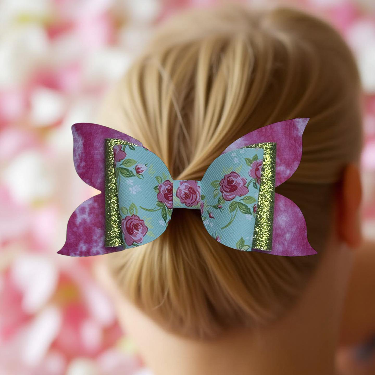 “Shine bright with a touch of floral charm! This dazzling bow features a sparkling blend of pink, white, and green topped with delicate pink roses, making it the perfect accessory for adding a pop of elegance and fun to any outfit. Lightweight, comfy, and secured with a silver alligator clip, it’s a must-have for little fashionistas who love a mix of sparkle and sweetness!” 🌸💖💚