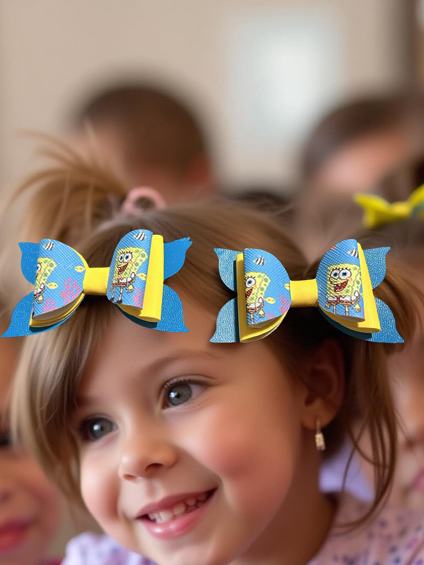 Bright, bubbly, and full of giggles—these bite-size bows feature everyone’s favorite pineapple-dwelling pal! With cheerful blue and yellow ribbons and SpongeBob’s iconic grin, they’re perfect for cartoon-loving cuties and playful styling.