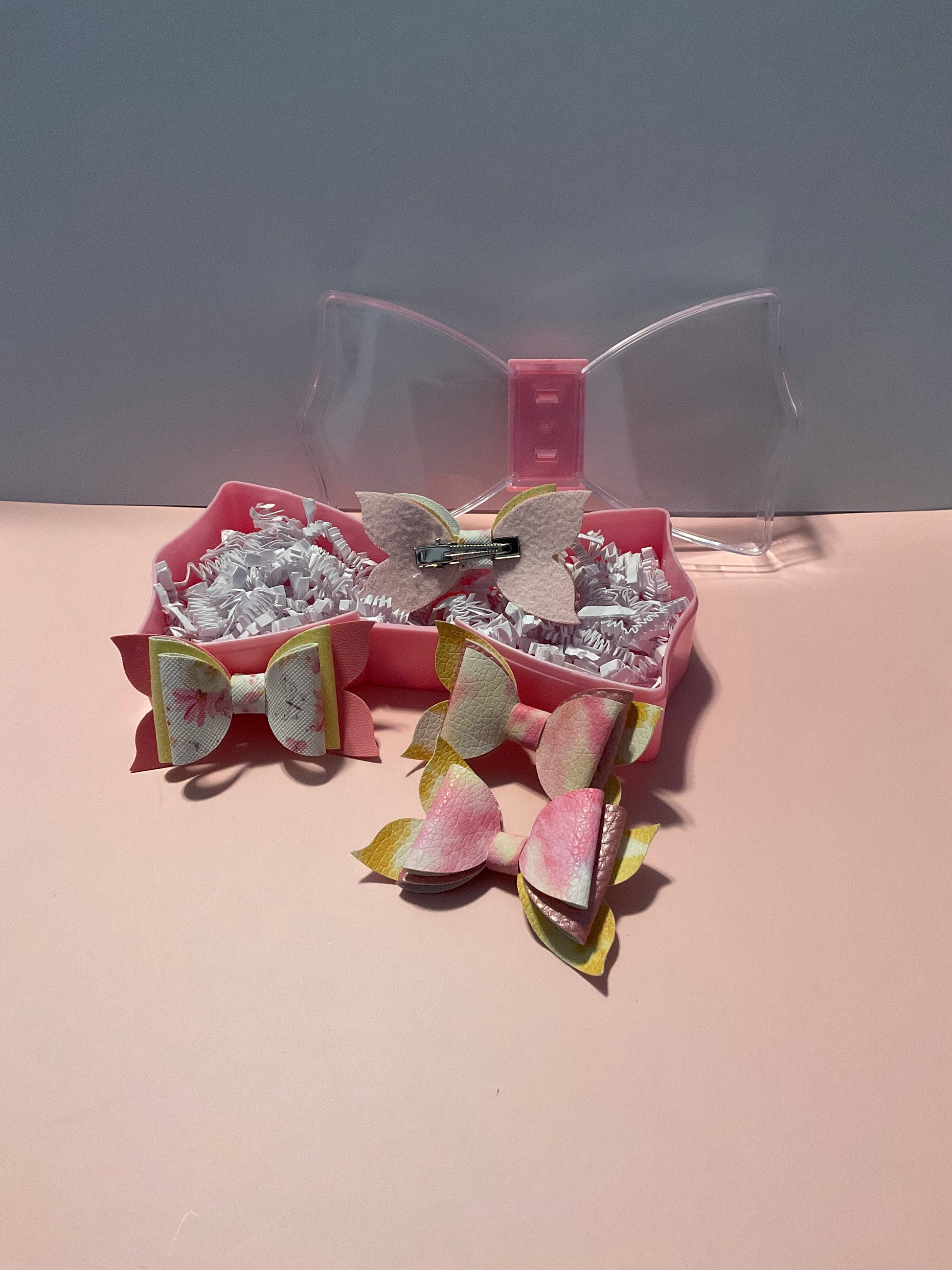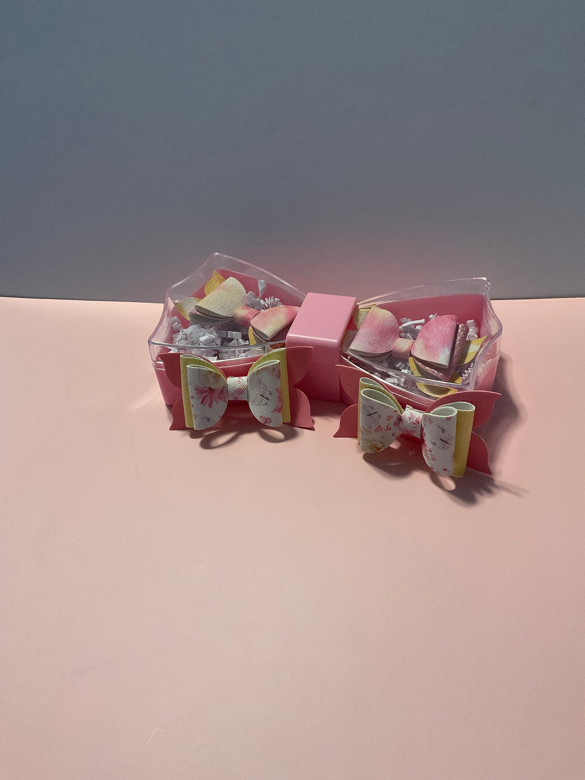 A pocketful of sunshine, wrapped in pastel charm! This cheerful bundle includes two pairs of bite-size bows each one blooming with soft florals, dreamy gradients, and heartwarming hues. Tucked inside a pink bow case with crinkle paper fluff, it’s the perfect gift-ready set for mini moments of joy.