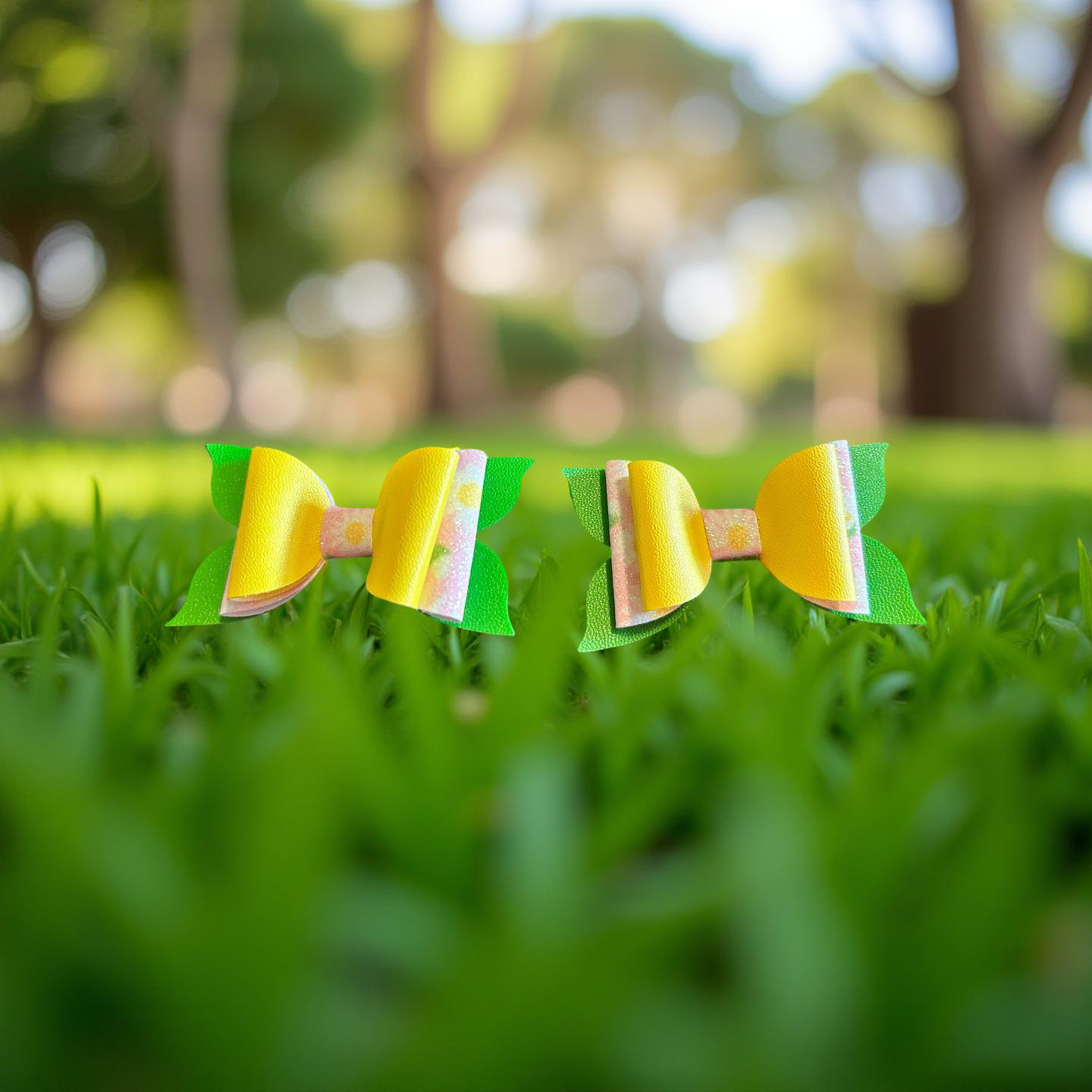 Brighten up any look with these sunflower-inspired bite-size bows! A cheerful mix of green, yellow, and pink makes them perfect for little ones and pets who love a pop of sunshine. Lightweight, comfy, and sold as a darling pair, they’re tiny but full of charm just like the smiles they’ll bring!
