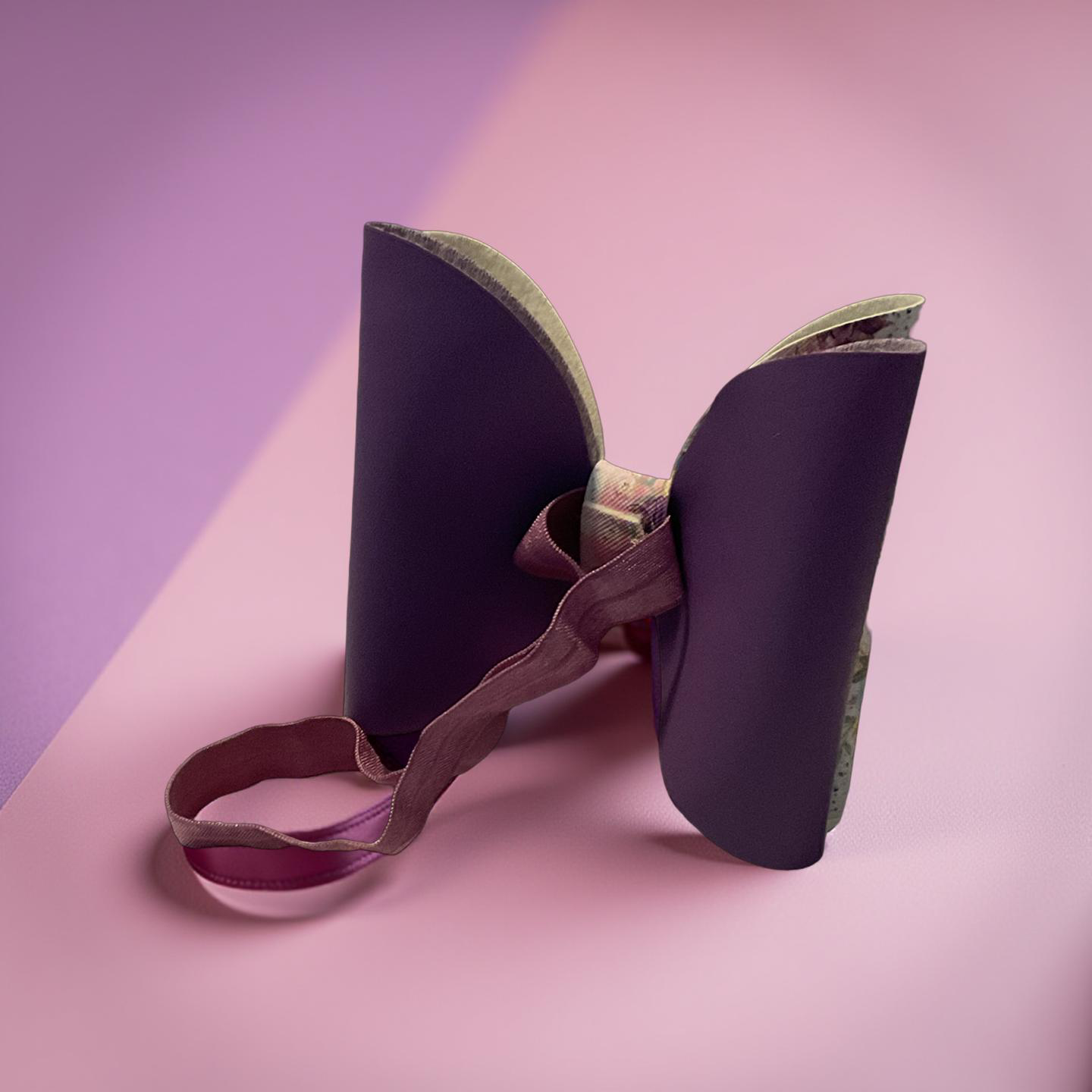 Perfect for tea parties and special occasions, this headband blends classic stripes with a lush floral bouquet. The top layer features detailed roses and wildflowers over soft vertical stripes, backed by a deep plum-purple base.