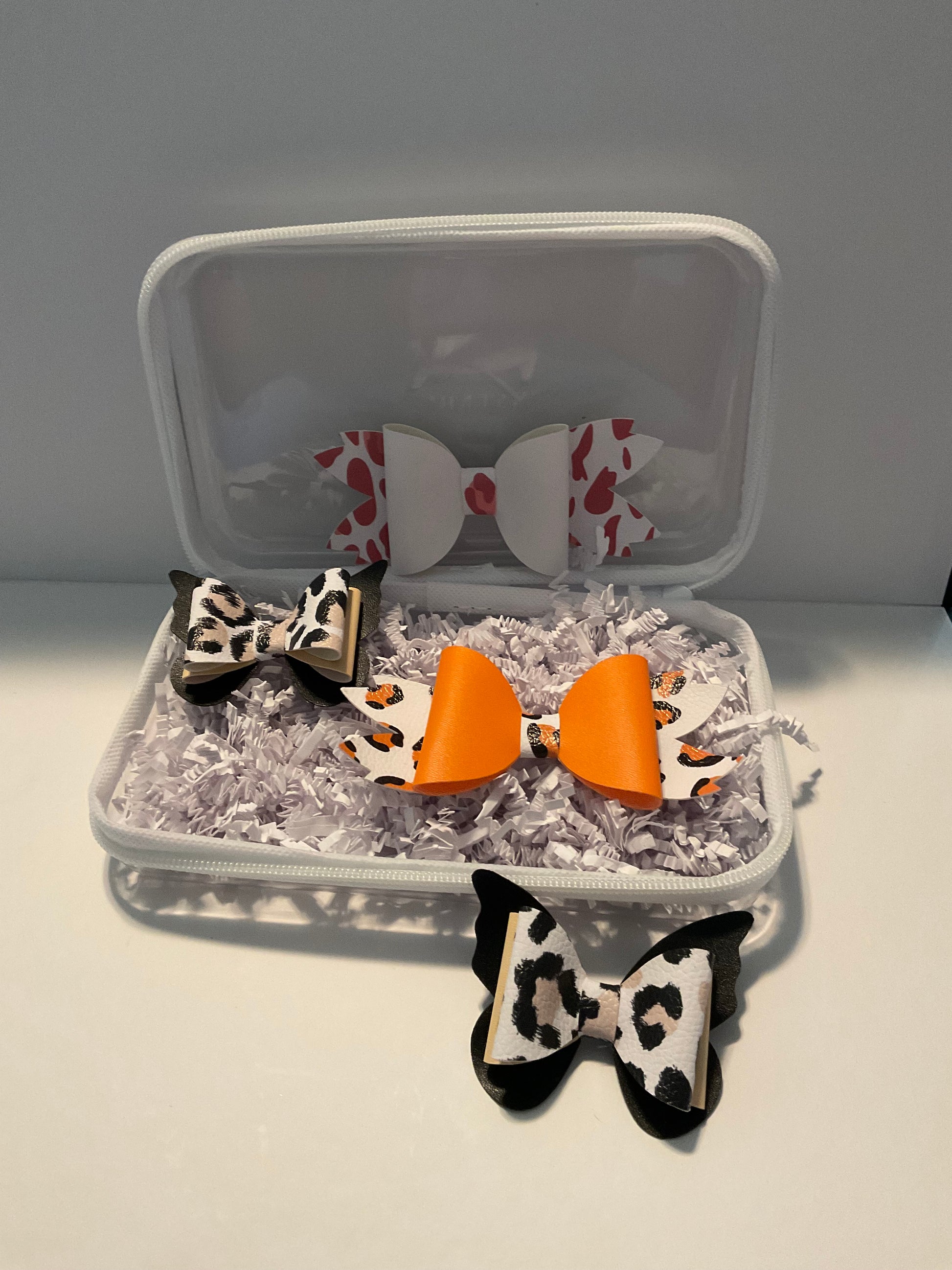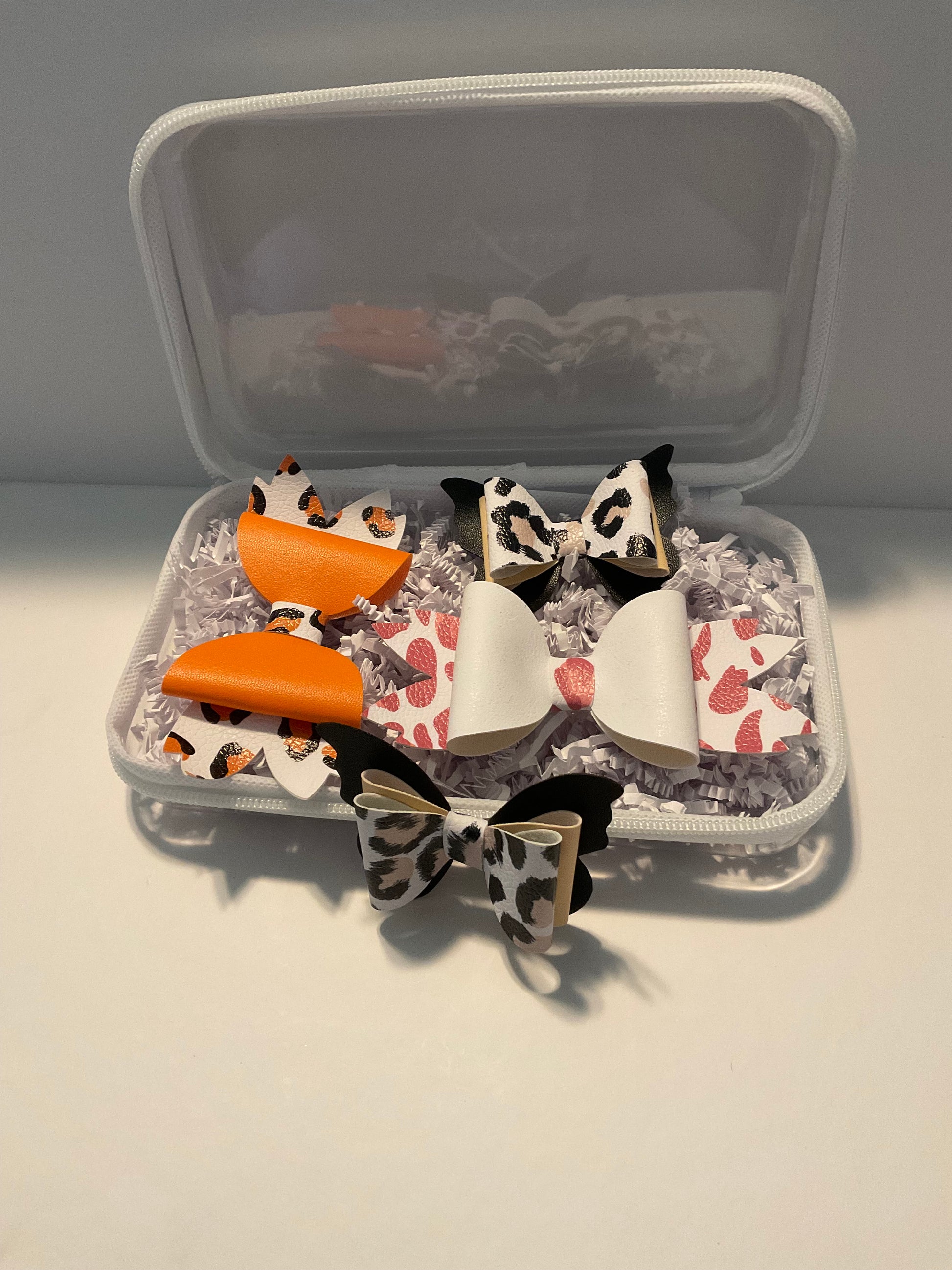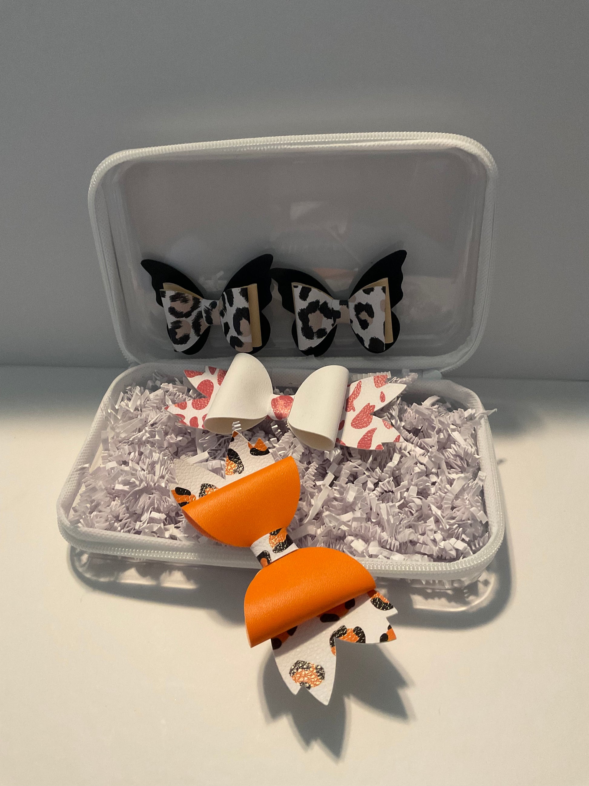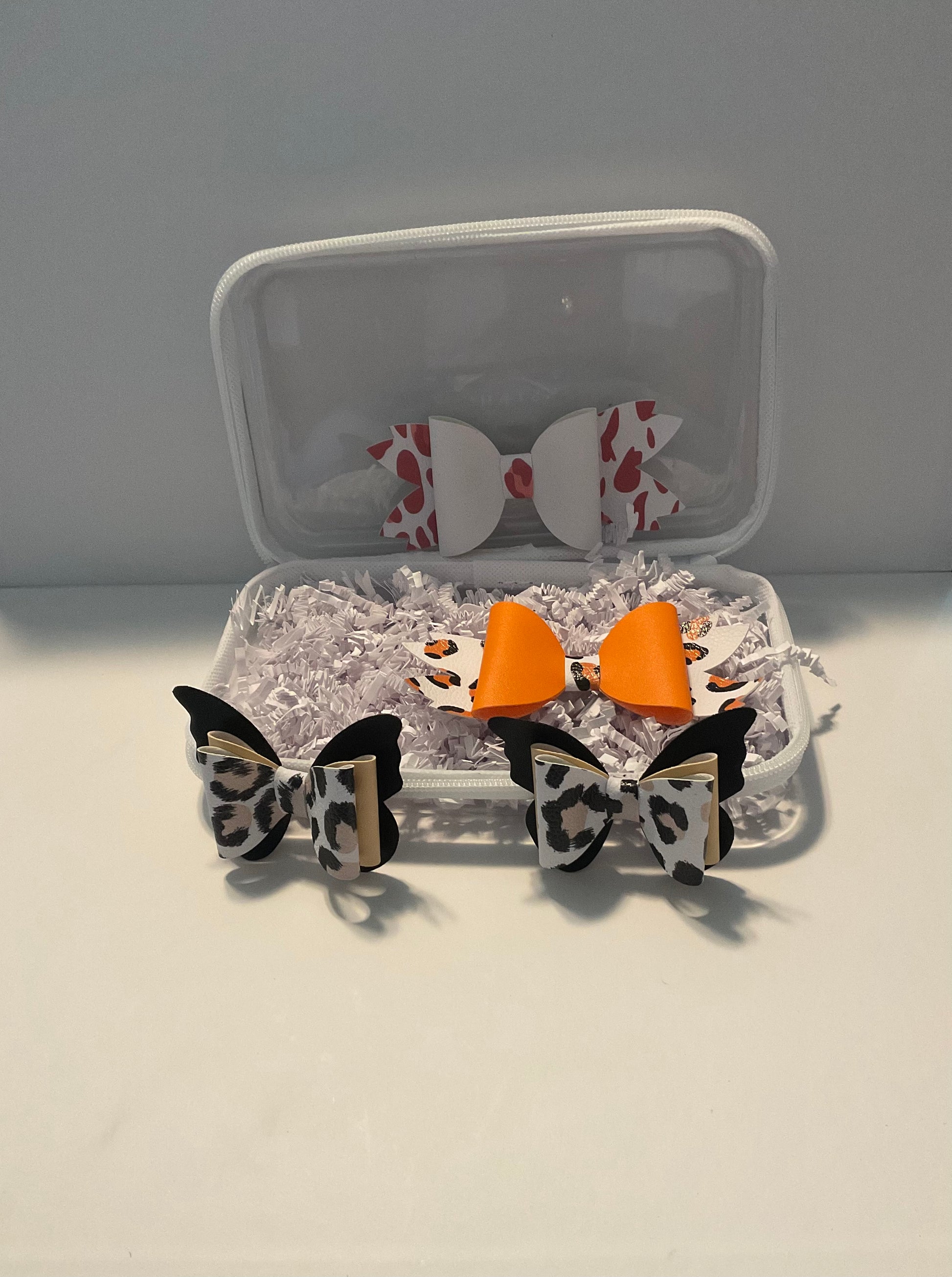 Bold meets chic in our Wild Neutrals bow bundle. This stylish set blends playful leopard print with warm neutral tones and pops of orange for a fierce yet polished look. Perfect for fall outfits, statement days, or little ones who love a touch of wild flair.